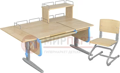 Парта 120 см с раздельной столешницей + тумба + задняя приставка + задняя двухъярусная приставка