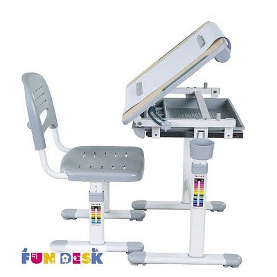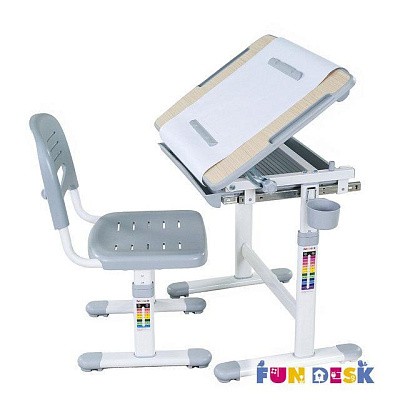 «ФанДеск» могут регулировать высоту парты под рост ребенка, а столешница может изменять угол наклона. Каждую модель можно оборудовать дополнительными аксессуарами. Парта «FunDesk» имеет множество ящиков для хранения канцелярских принадлежностей и тетрадей.