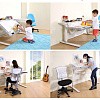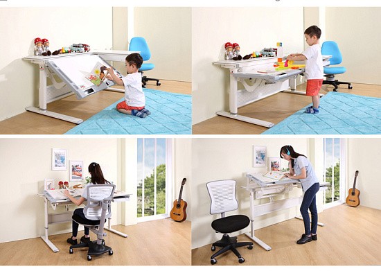 Основным отличием и уникальным достоинством этой модели является наличие трех независимых друг от друга механизмов регулировки. Один механизм отвечает за изменение общей высоты стола, а два других механизма за изменение высоты и угла наклона рабочей части стола. Совмещение этих механизмов помогает добиться самой минимальной высоты стола в 22см от уровня пола, что позволяет заниматься за ним ребенку даже сидя на полу! Максимальная высота регулировки - 100см подходит для занятий стоя даже взрослого человека.
