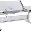 Поверхность столешницы очень функциональна, благодаря её разделению на две независимые друг от друга зоны: одна из которых наклонная рабочая, за ней ребёнок пишет, читает и рисует, а вторая горизонтальная вспомогательная, на которой можно удобно расположить дополнительную литературу для подготовки уроков, настольную лампу, монитор. С правой стороны, под столешницей, имеется дополнительный выдвижной ящик. Все это о и делает его уникальным столом, который выгодно отличается от всех остальных.