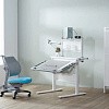 Белая стальная пластина на задней панели стола может использоваться как магнитная доска и на ней будет удобно оставлять заметки и составлять расписание.