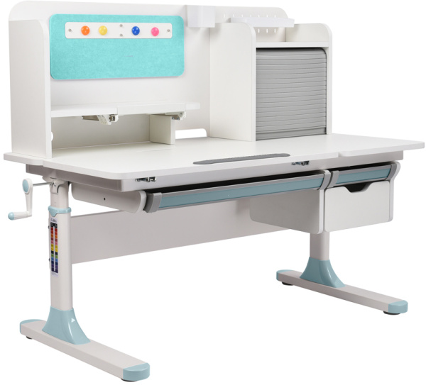 Столешница парты Camellia разделенная на две зоны рабочую (наклонную) и статичную, позволяет максимально эффективно использовать пространство во время учебы и развития вашего ребенка.Под столешницей располагаются три выдвижных ящика, два из которых имеют разделение на секции для более комфортного хранения вещей. Особенностью данной модели является надстройка со встроенной, выдвижной подставкой для книги, доска для заметок ,а также вместительная полка с роллетной дверцей.