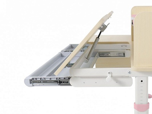 Регулировка высоты столешницы 52-76 см. Высота стола регулируется с помощью механической ручки, что дает возможность легко настроить парту под рост ребенка. Стол с трансформирующейся столешницей, которая изменяет угол наклона до 50 градусов с помощью механизма газлифт. Вы можете установить оптимальный угол наклона столешницы для чтения, письма или рисования.