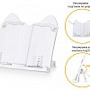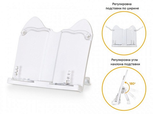 Переносная подставка из прочного пластика подстраивается под размер учебника и тетради, может изменять угол наклона и имеет зажимы для удобства.