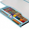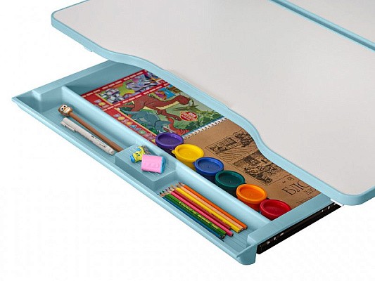 Под столешницей расположен вместительный органайзер для тетрадей и канцелярии, созданный из безопасного и прочного ABS-пластика.
