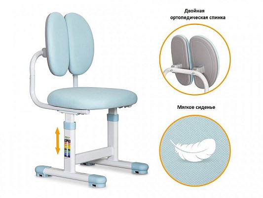 Отличительной особенностью этой модели является мягкое кресло, оббитое дышащей мебельной тканью, что повышает комфорт ребенка. Двойная ортопедическая спинка прилегает к спине, минимизирует нагрузку и со временем формирует правильную осанку школьника. Максимальная нагрузка – до 60 кг.