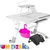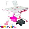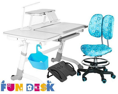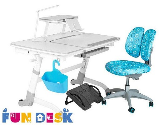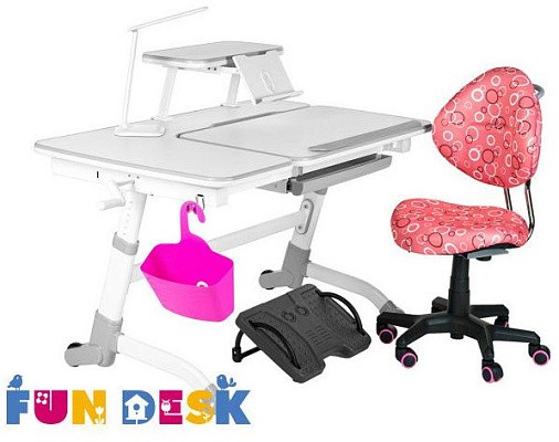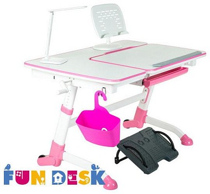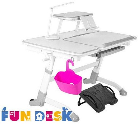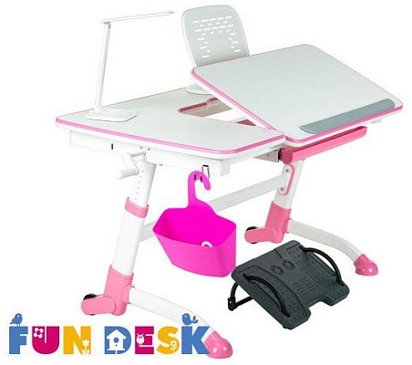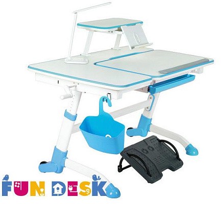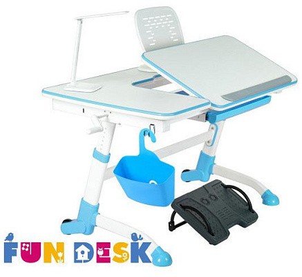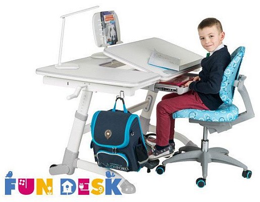 «ФанДеск» могут регулировать высоту парты под рост ребенка, а столешница может изменять угол наклона. Каждую модель можно оборудовать дополнительными аксессуарами. Парта «FunDesk» имеет множество ящиков для хранения канцелярских принадлежностей и тетрадей.