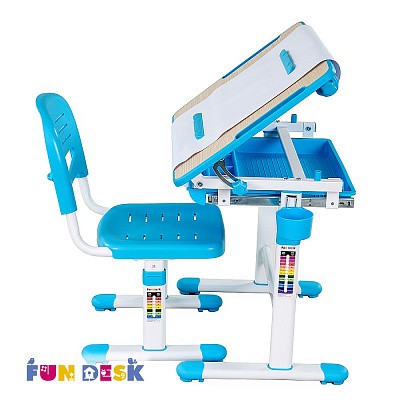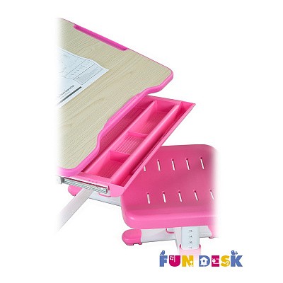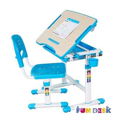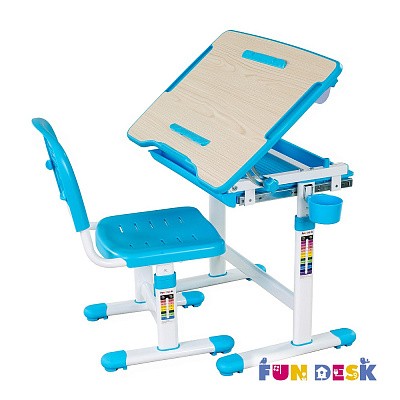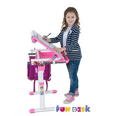 «ФанДеск» могут регулировать высоту парты под рост ребенка, а столешница может изменять угол наклона. Каждую модель можно оборудовать дополнительными аксессуарами. Парта «FunDesk» имеет множество ящиков для хранения канцелярских принадлежностей и тетрадей.
