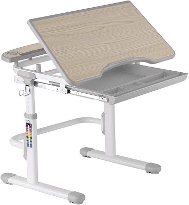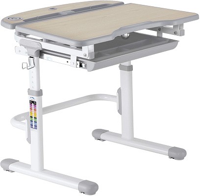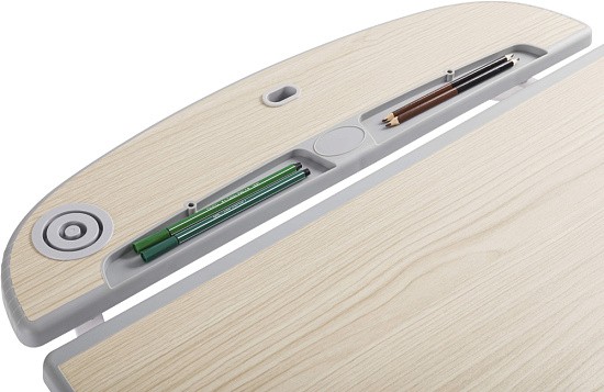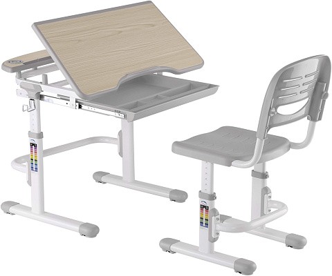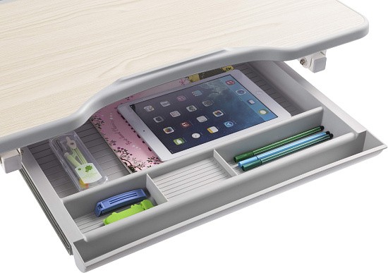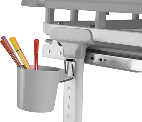 В комплекте предусмотрено всё до мелочей: от оригинальных решений в дизайне столешницы, до ящика для школьных принадлежностей и крючка для рюкзака. Не забыли производители и о взрослых – для их удобства на ножках парты и стула расположены удобные, интуитивно понятные таблицы, облегчающие процесс регулировки. Удобство всегда начинается с мелочей.