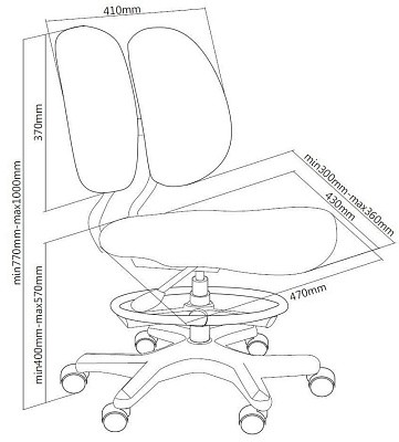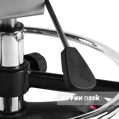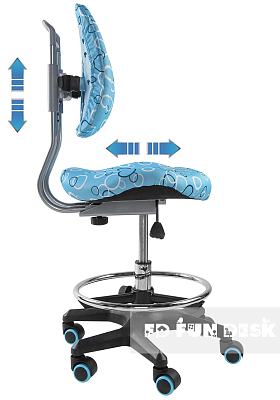 Специально разработанная спинка кресла из двух частей регулируется по высоте, что обеспечивает правильное позиционирование позвоночника ребенка. Пневматический механизм позволяет легко отрегулировать высоту кресла.