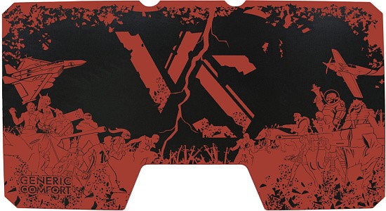 Generic Comfort Gamer2/VS - стильный компьютерный стол с необычным дизайном. Кромки стола выполнены в красном цвете, а на черную основу методом ультрафиолетовой печати нанесен красный рисунок. За счет такой технологии, изображение получается ярким, насыщенным и при этом долговечным, с высокой стойкостью к истиранию. Рисунок наносится дополнительным слоем, вследствие чего выступает на 0,2 мм над поверхностью. Поэтому, на данном столе рекомендуется использовать коврик для мышки.