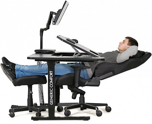 Generic Comfort Uno - эргономичный стол, позволяющий менять положения пользователя в процессе работы. Теперь работать за компьютером Вы сможете сидя, полулежа и даже стоя или на ходу, например занимаясь на дорожке. Стол регулируется по высоте электроприводом, позволяя подстроиться под Ваш рост быстро и бесшумно. Регулируемая по углу наклона столешница обеспечит комфорт рукам и предплечьям при работе в положении полулежа. Фиксация мышки на наклонном сегменте осуществляется благодаря специальному полимагнитному коврику, по которому в обычном положении мышка легко скользит, а при повороте на 90 градусов - надежно фиксируется. В комплекте со столом идет лоток для сетевого фильтра. Также в нашем интернет-магазине вы можете приобрести к столу кронштейн для монитора и вертикальный кабель-канал.