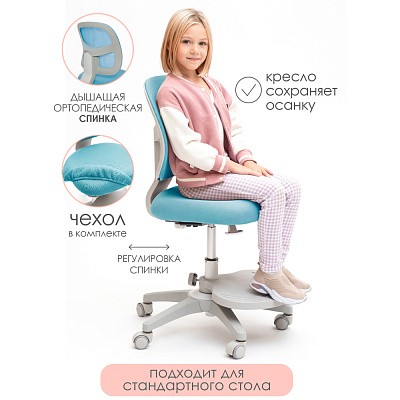 Детское кресло Holto-22 для детей от 3 лет и до подросткового возраста. Подходит для роста от 110 до 170 см. Можно использовать как с растущей партой, так и с обычной. Изменяя глубину спинки и высоту сидения, Вы подберете наиболее комфортное положение для ребенка. Колеса имеют функцию стоп-вращения при посадке в кресло человека свыше 25 кг. Малыш не будет отвлекаться от уроков, катаясь на кресле. Кресло имеет регулируемую подставку для ног, которую можно снять при необходимости.