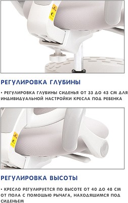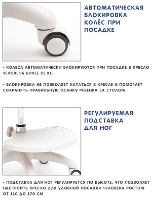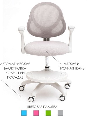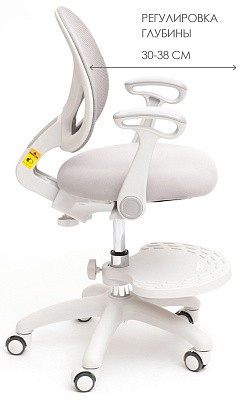 Детское кресло Holto-36 для детей от 3 лет и до подросткового возраста. Подходит для роста от 110 до 170 см. Можно использовать как с растущей партой, так и с обычной. Изменяя глубину спинки и высоту сидения, Вы подберете наиболее комфортное положение для ребенка. Колеса имеют функцию стоп-вращения при посадке в кресло человека свыше 25 кг. Малыш не будет отвлекаться от уроков, катаясь на кресле. Кресло имеет регулируемую подставку для ног, которую можно снять при необходимости.
