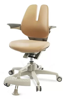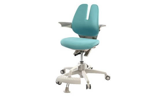 Высокая спинка имеет ярко выраженный ортопедический обхват, помогает пользователю добиться правильного расположения всех отделов позвоночника и поясницы. Она сделана с применением технологии Duoflex, регулируется по росту, в глубину, что позволяет персонализировать ее под особенности телосложения в период интенсивного роста.