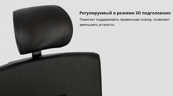 Подголовник так же обит кожей и регулируется по высоте и наклону, что обеспечивает комфортное положение головы.