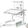 Рабочая поверхность стола с регулируемым углом наклона до 30 градусов. Поэтому, можно установить оптимальный угол наклона для занятий (чтение, письмо, рисование). в результате, будет поддерживаться правильная осанка, а также глаза ребенка будут на безопасном расстоянии от учебника / тетради.