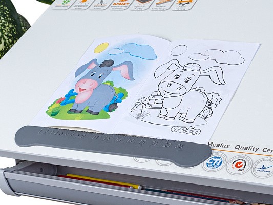 Наличие съемного прорезиненного барьера на столешнице предотвращает скатывание предметов во время выполнения домашнего задания.