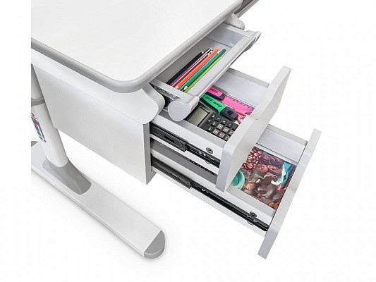 Стол имеет большой выдвижной органайзер размещенный под столешницей, который изготовлен из прочного, безопасного пластика.