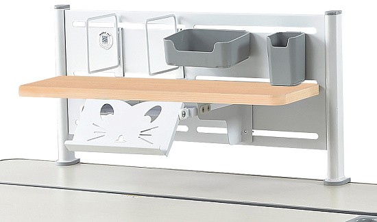 Под статичной часть столешницы размещен выдвижной органайзер с разделителями для удобного хранения канцтоваров и прочих школьных принадлежностей.