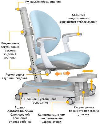 Детское кресло Ortoback Plus комплектуется регулируемой подставкой для ног, что добавляет дополнительные удобства для детей младшего возраста. Подставка из прочного пластика регулируется по высоте в трех положениях. Кроме того, по необходимости модно менять глубину. Подставка дает упор для ног, когда парта не опускается достаточно низко. Благодаря большому количеству регулировок и регулируемой подставке для ног кресло легко настраивается для детей любого возраста.