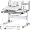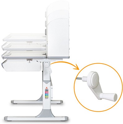 Подвижная часть столешницы меняет свой угол наклона с помощью специального газлифта. Одно плавное нажатие и вы трансформируете рабочую зону для письма и чтения, а благодаря большому углу наклона (до 60 градусов) столешницу можно использовать для рисования, как мольберт. Чтобы ребенок не травмировался, когда самостоятельно будет менять угол наклона, на столешнице есть безопасный зазор.
