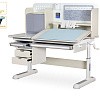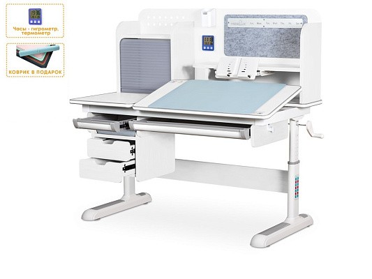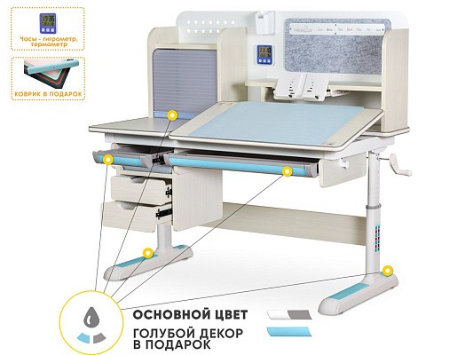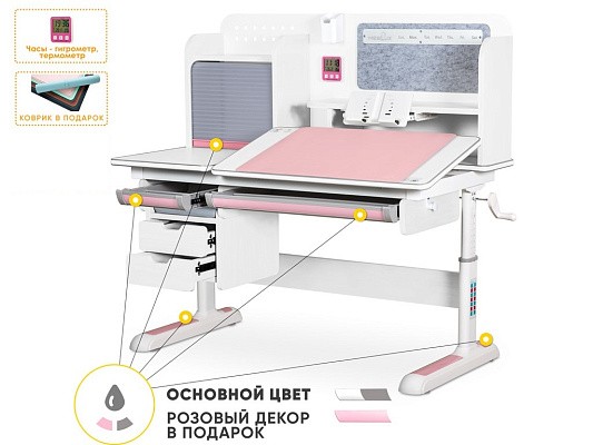 Накладки Multicolor. Важной особенностью данного стола является наличие сменных цветных накладок. Приобретайте стол серого цвета и получите на выбор либо голубые, либо розовые накладки. Кроме того, вы можете сразу приобрести стол только с розовыми, либо только с голубыми накладками в комплекте. Накладки меняются на ножках, выдвижном органайзере, пенале и на нише с подвижным ролетом. Меняйте цвет декора в зависимости от настроения вашего ребенка!