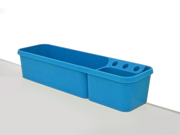 Одним из таких модулей является навесной пенал-контейнер для растущих парт Меалюкс. Сделанный из высококачественного, прочного ABS-пластика, он также абсолютно надёжен и безопасен для детского здоровья, как и вся продукция компании. Пенал отличается изрядной глубиной и оригинальной компоновкой отсеков. Благодаря такому подходу, во время подъёма столешницы даже в крайнее положение, из него не выпадет на пол ни один, даже самый мелкий, предмет. Стоит отдельно отметить очень интересное и удобное решение для вертикального хранения карандашей и ручек.