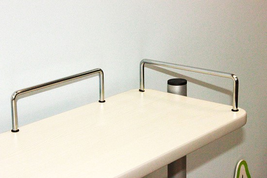 По краям полок сделаны металлические ограничители, чтобы располагать книги и другие принадлежности более устойчиво.