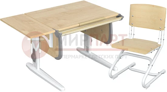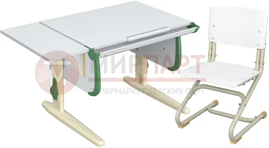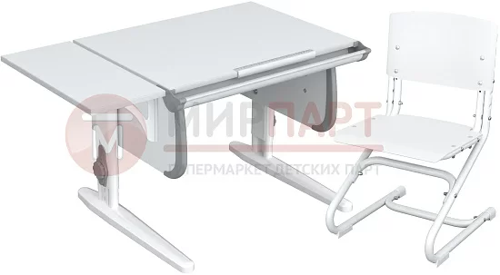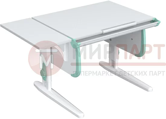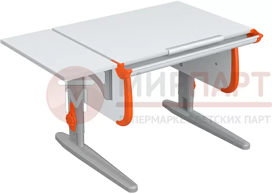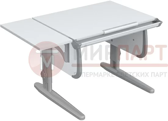 СУТ-24-01-К – это новинка из серии «Дэми-White», оборудованная короткой боковой полкой. Парта идеально подходит для того, чтобы обустроить в детской удобное и, вместе с тем, компактное рабочее место, которое будет служить ребёнку на всём протяжении его обучения в школе.