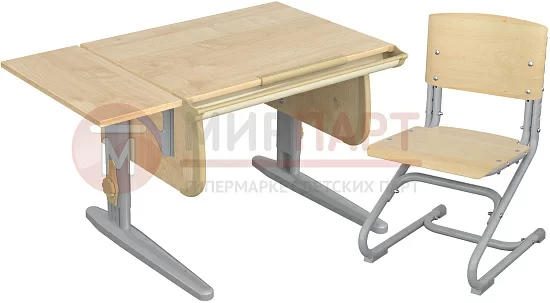 Рабочее пространство парты дополнительно расширено за счёт удобной боковой приставки. Она не наклоняется при изменении положения столешницы и оптимально подходит для размещения стаканчика с водой, компьютерной мышки и т. п. предметов.