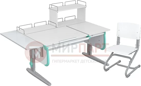 Парта 120 см с раздельной столешницей + задняя приставка + задняя двухъярусная приставка + боковая приставка 75 см