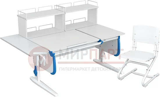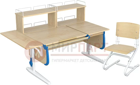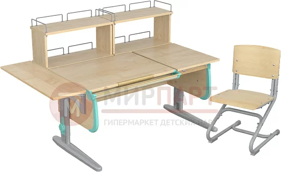 Парта 120 см с раздельной столешницей + 2 задние двухъярусные приставки + боковая приставка 75 см