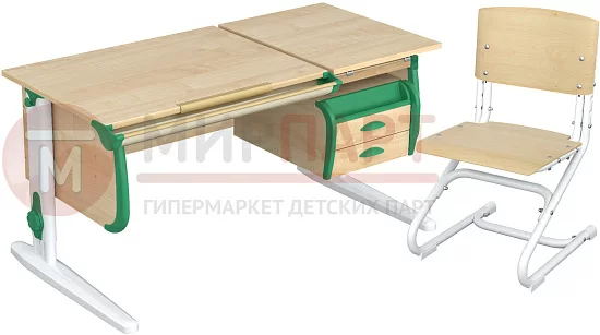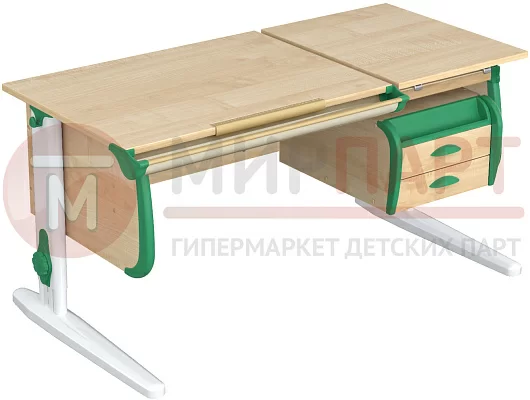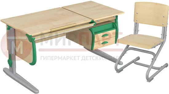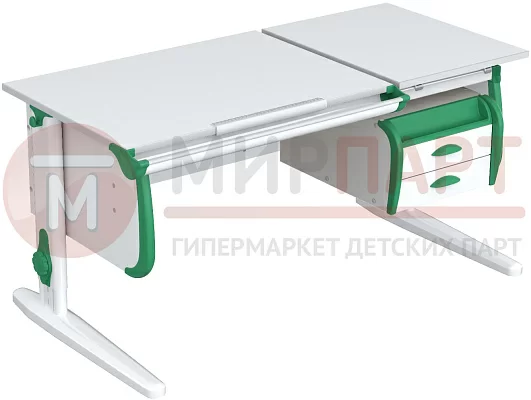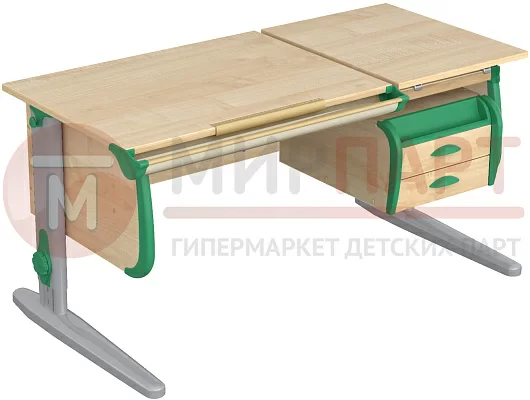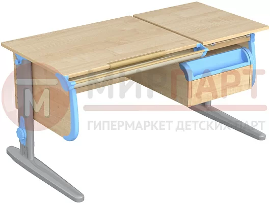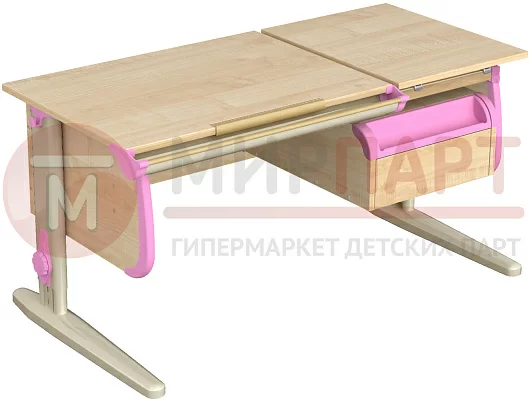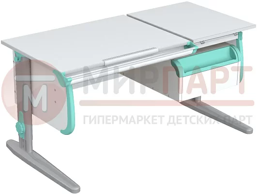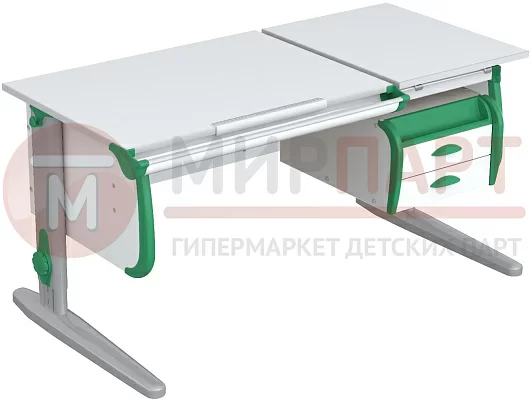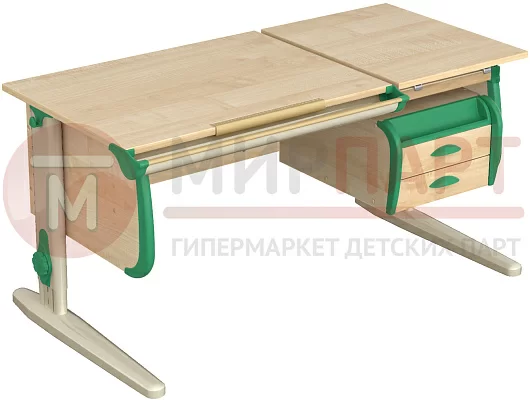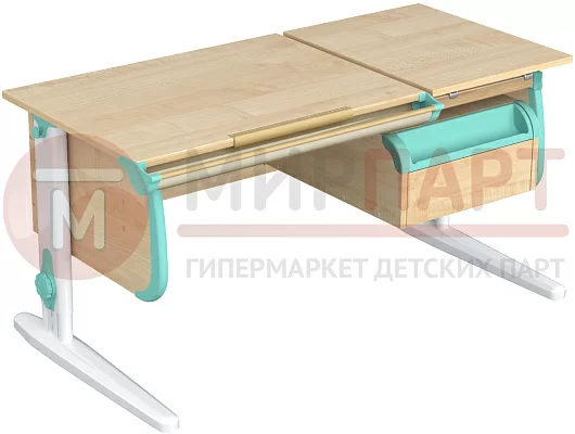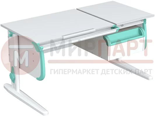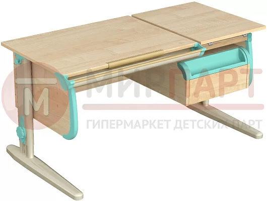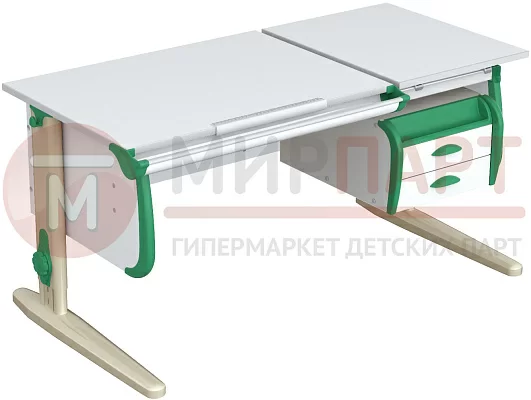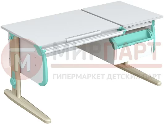 Неподвижная половинка столешницы прекрасно подойдет для хранения тетрадей, учебников и прочего во время занятий, а подвижная может в это время менять свой наклон для различной деятельности. Рисование, черчение, письмо, чтение – за такой партой удобно будет делать любой предмет.