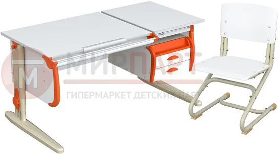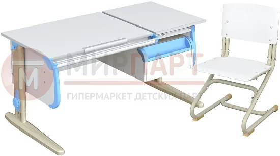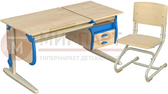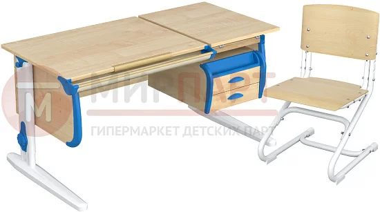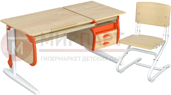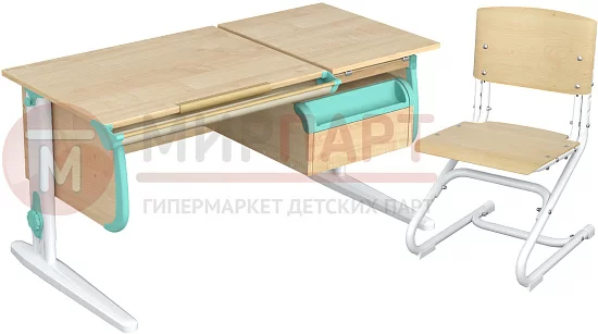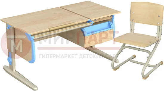 Парта станет отличным помощником, настоящим партнером в нелегком деле постижения множества наук. Комфорт и удобство обеспечат ребенку отличное рабочее настроение – ничего не будет отвлекать от занятий, ни ноющая спина, ни затекшие ноги, ни уставшие глаза. Кроме этого, парта СУТ 25-03 поможет школьнику разместить все необходимые вещи максимально удобно, чтобы все нужное было под рукой, а ненужное – не мешало. Раздельная столешница, подвесная тумбочка, удобный открытый пенал для канцелярских принадлежностей, которые постоянно куда-то укатываются – великолепный функционал!