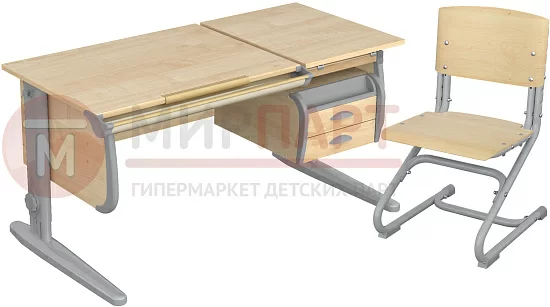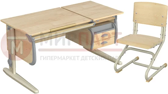 Парта 120 см с раздельной столешницей + подвесная тумба