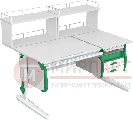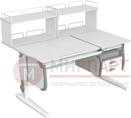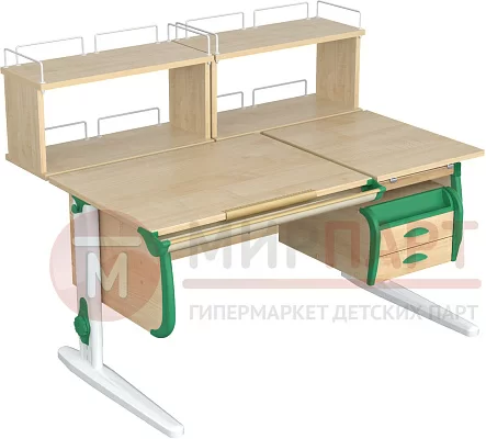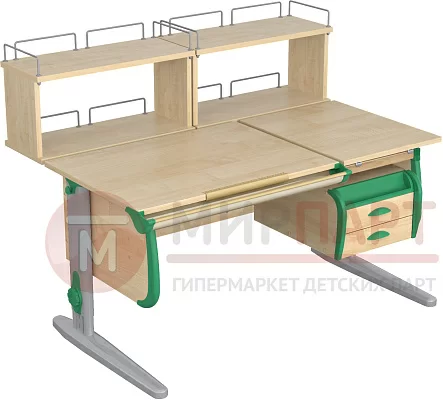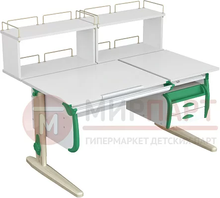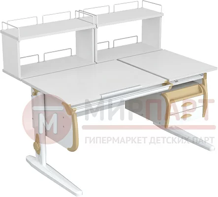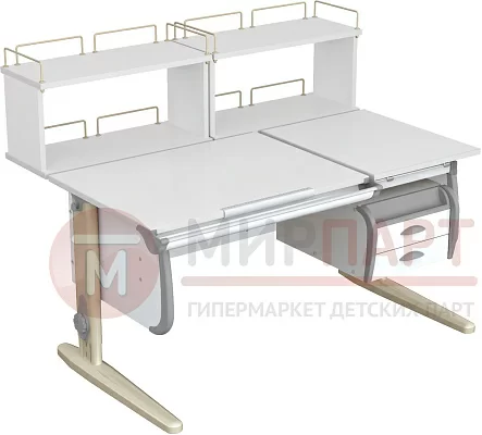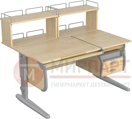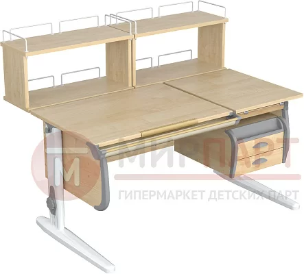 Парта 120 см с раздельной столешницей + тумба + 2 задние двухъярусные приставки