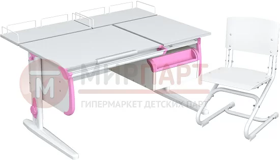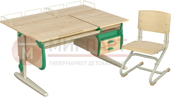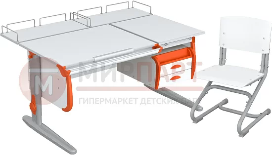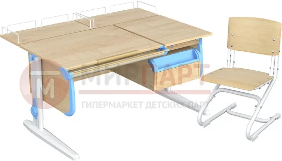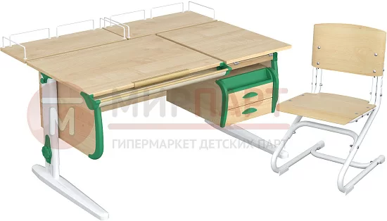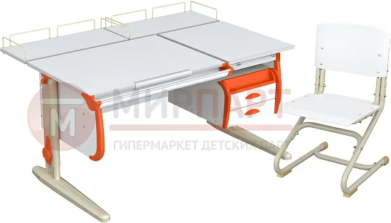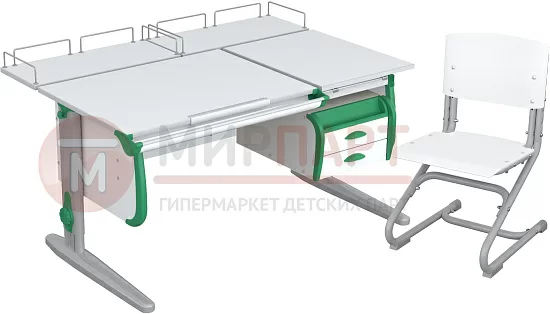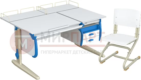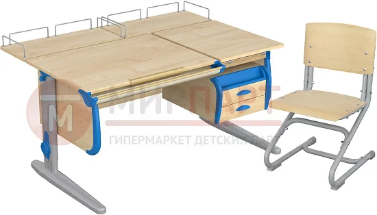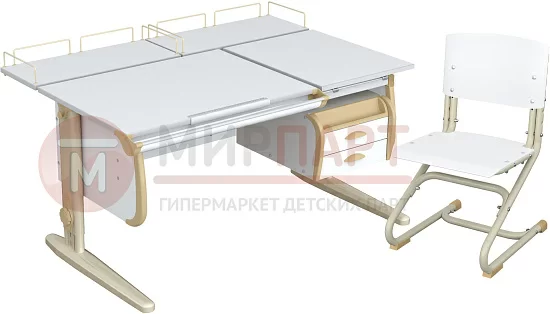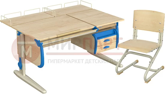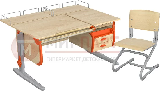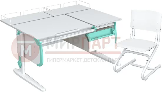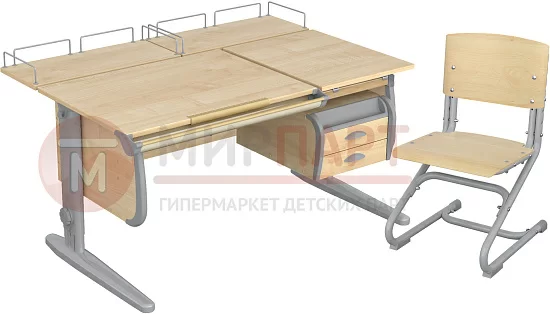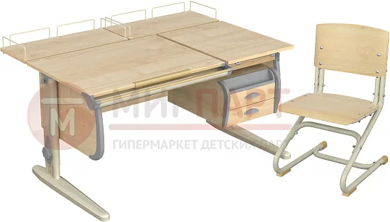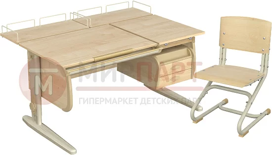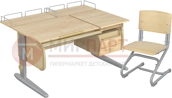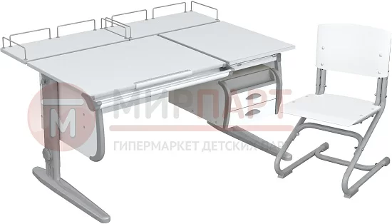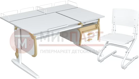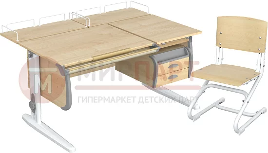 Парта 120 см с раздельной столешницей + тумба + 2 задние приставки