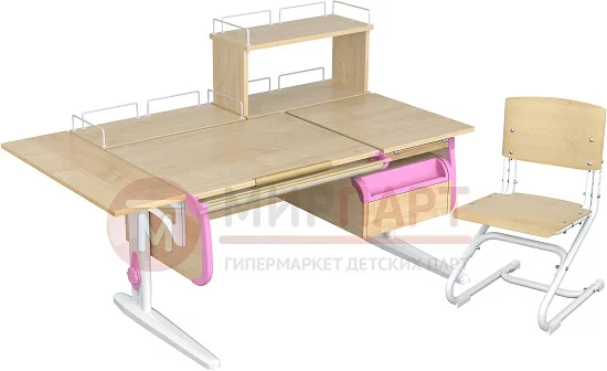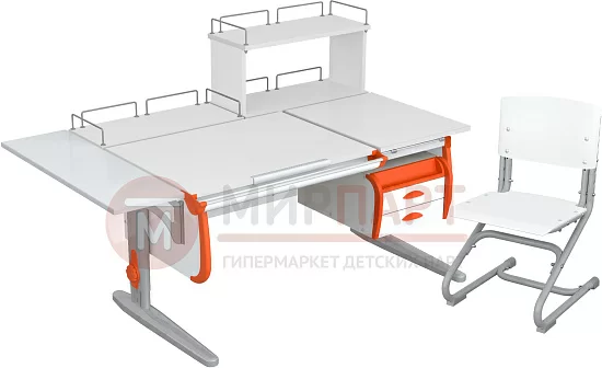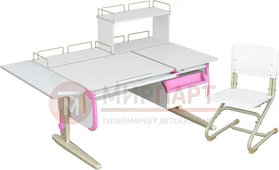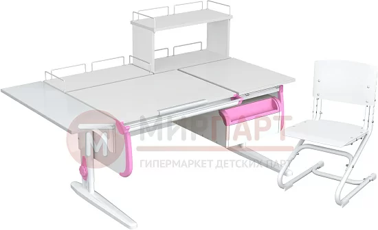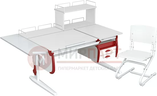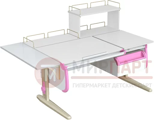 В арсенале СУТ 25-05-Д1 есть раздельная столешница для обеспечения комфорта во время занятий, подвесная тумбочка с двумя ящиками и пеналом, короткая боковая полка для тетрадей и учебников и две просторных задних приставки, одна из которых двухъярусная. Всё это богатство в совокупности превращает растущую парту в настоящий детский кабинет, возможностями которого не могут похвастаться и многие взрослые модели рабочих мест. В сочетании с ярким стильным дизайном белого цвета такие достоинства не могут оставить равнодушными ни своих будущих маленьких владельцев, ни их родителей.