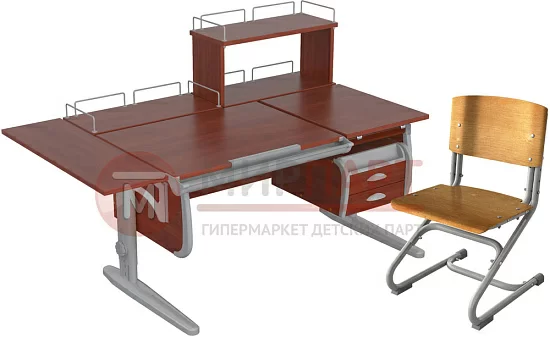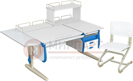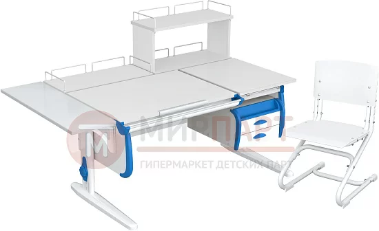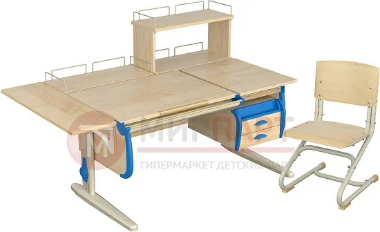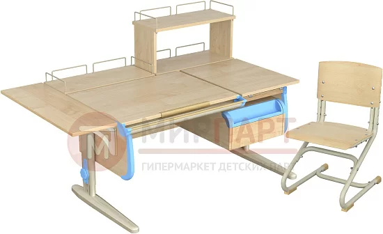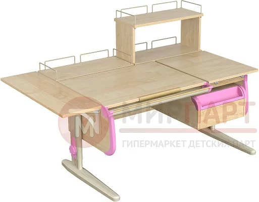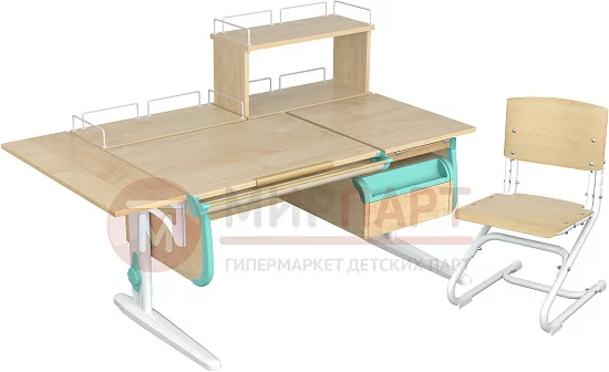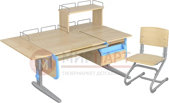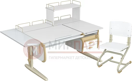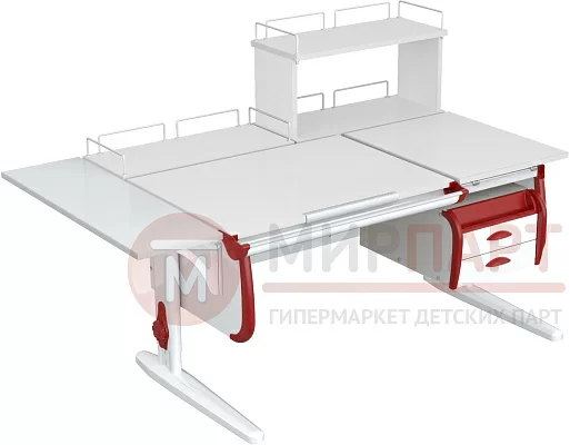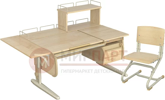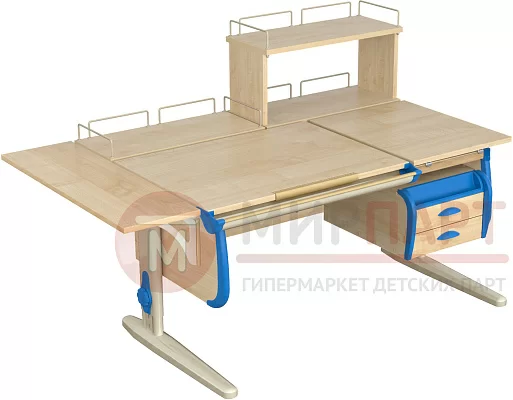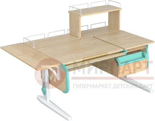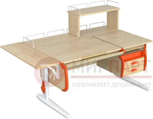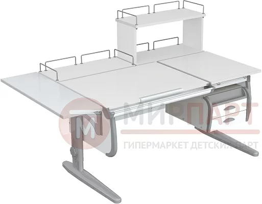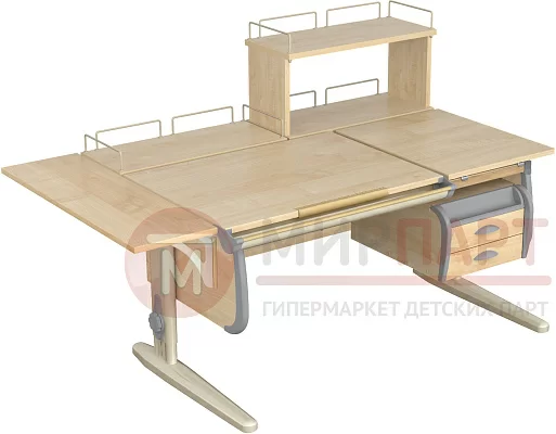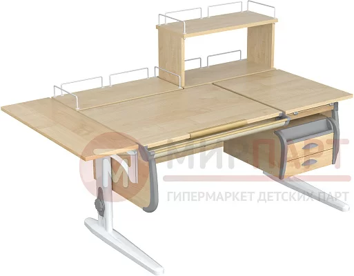 Парта 120 см с раздельной столешницей + тумба + задняя приставка + задняя двухъярусная приставка + боковая приставка 75 см
