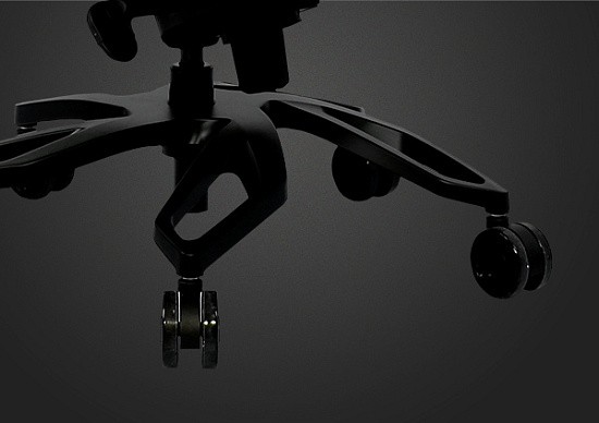 Всю конструкцию кресла Cyberpunk удерживает пятиконечное основание особой формы, которое выполнено из алюминия и окрашено в черный цвет. Легкость и тишину транспортировки обеспечивают увеличенные 75 мм колеса из полиуретана.